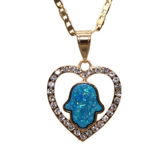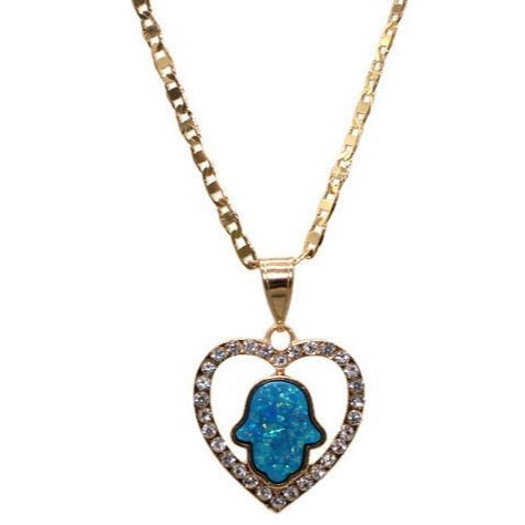 Hamsa Hand Heart with Necklace Hamsa Hand Heart Pendant - Has White Stones Includes a 22" Necklace that is Gold Filled Pendant is 24K Gold Filled Pendant Measures 1 1/4" Necklace Measures 22"...