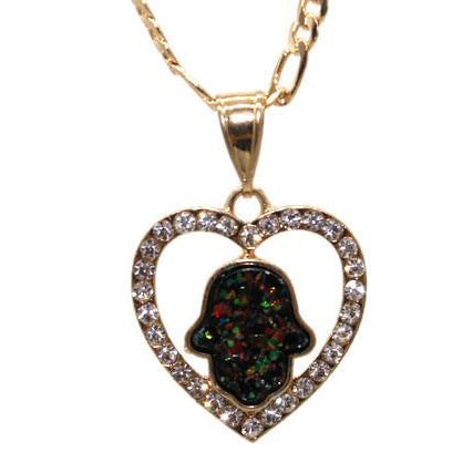 Hamsa Hand Heart with Necklace Hamsa Hand Heart Pendant - Has White Stones Includes a 24" Necklace that is Gold Filled Pendant is 24K Gold Filled Pendant Measures 1 1/4" Necklace Measures 24"...