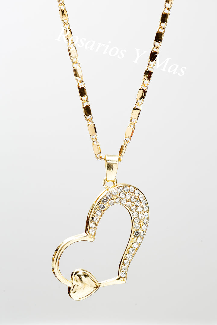 Corazon con cadena de 24" Medalla de Corazon con Piedras Blancas Incluye cadena de 24" de Oro Laminado Es de 24K Oro Laminado Medalla Mide 1 1/2" Cadena Mide 24" Beautiful Heart Pendant with 24" Necklace...