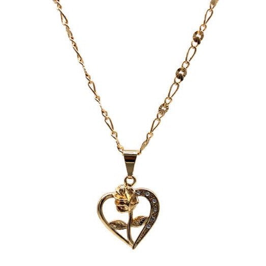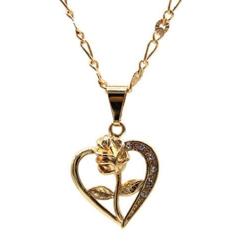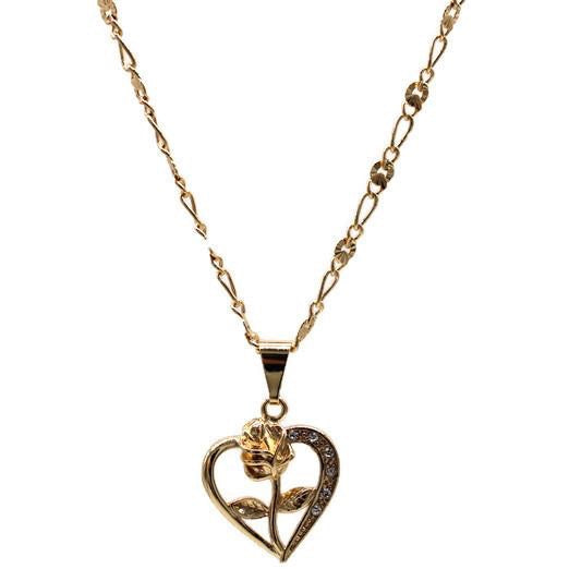 Heart Rose with Necklace Heart Rose Pendant Includes a 24" Necklace that is Gold Filled 24K Gold Filled Pendant Measures 1" Necklace Measures 24" Corazon con Rosa con Cadena Medalla de Corazon...
