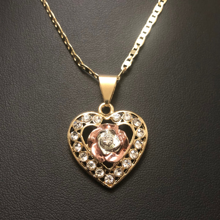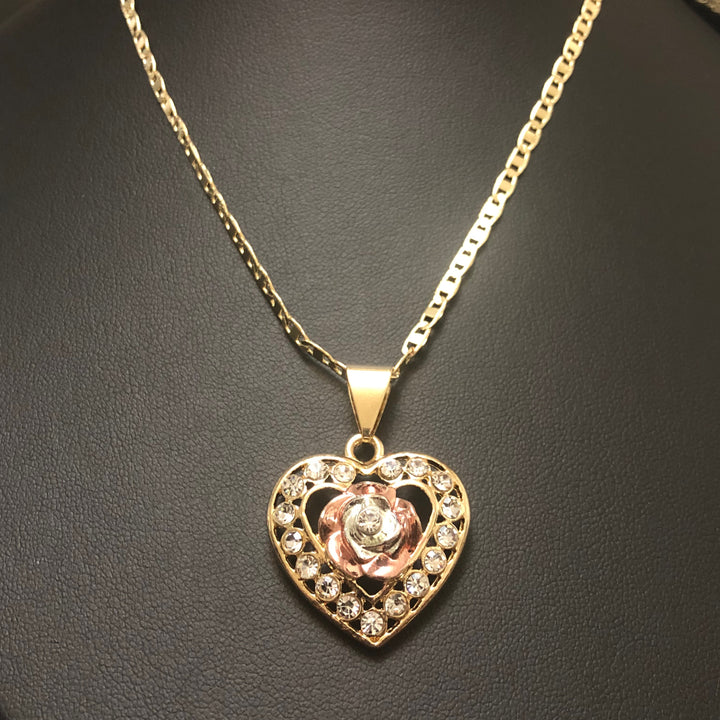 Heart w/ Rose Pendant with Necklace (24K Gold Filled)