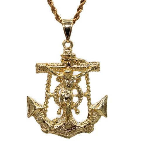 Jesus Christ Anchor with Necklace Jesus Christ Anchor Pendant Includes a 24" Necklace that is Gold Filled over Stainless Steel 24K Gold Filled Pendant Measures 2" Necklace Measures 24"- 3mm Jesu Cristo Ancla con...