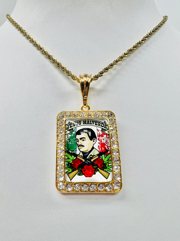 Jesus Malverde Pendant w/ Rope Necklace (24K Gold Filled)