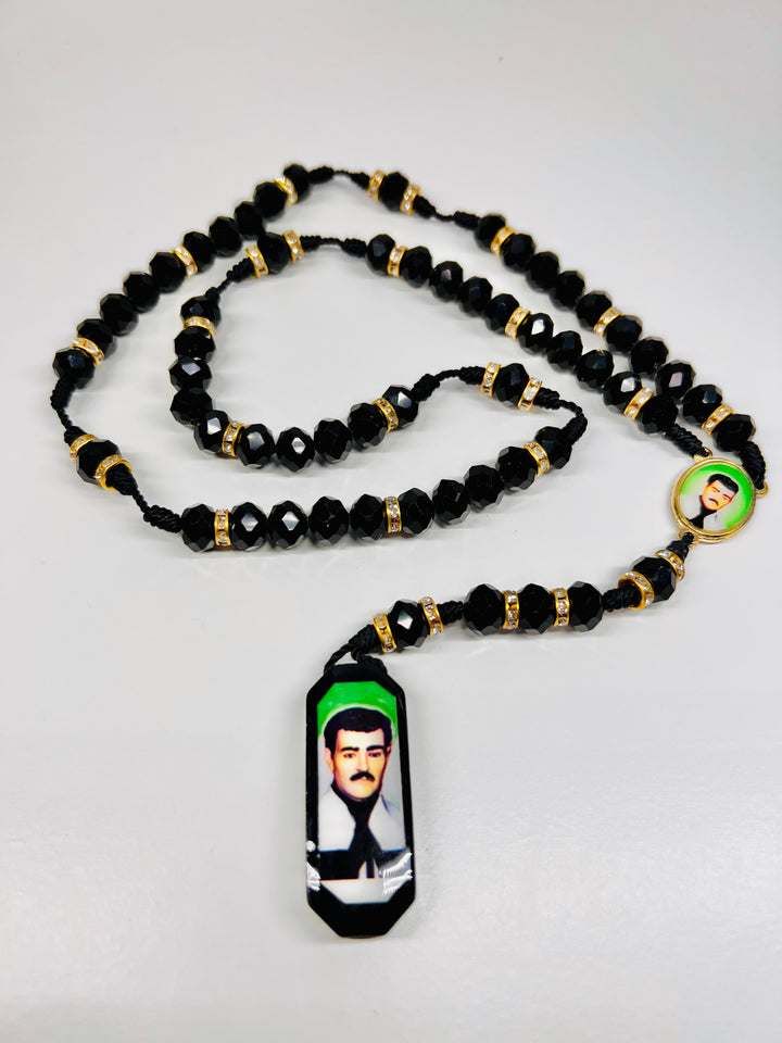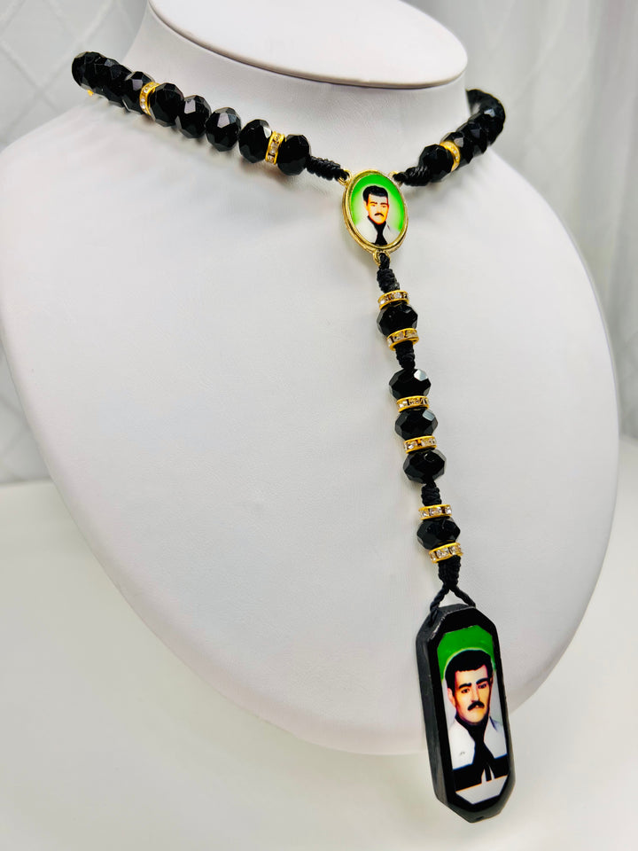 Jesus Malverde Rosary Necklace - Black