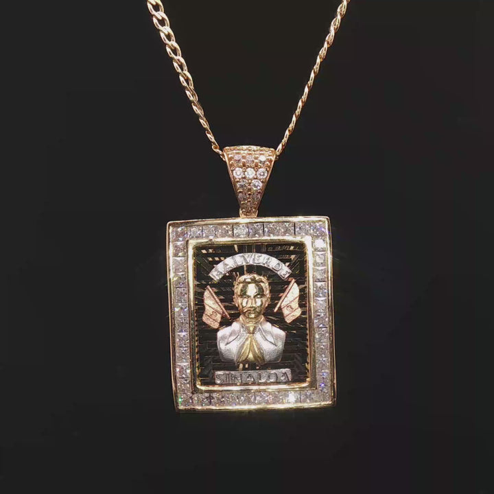 10K Jesus Malverde Pendant - Measures 1 1/4" with bail, Weights 4-5 grams (Three Tone) 10K Cuban Style Chain -...