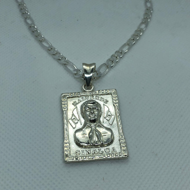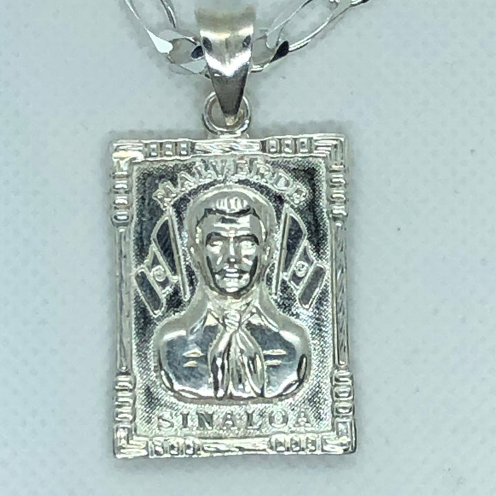 Jesus Malverde with 24" Figaro Necklace (.925 PURE SILVER)