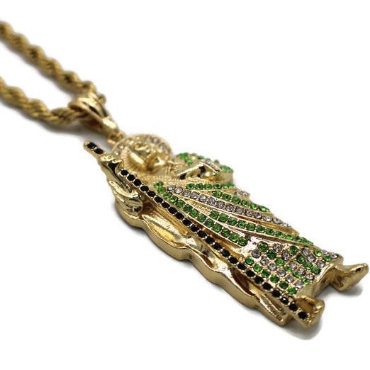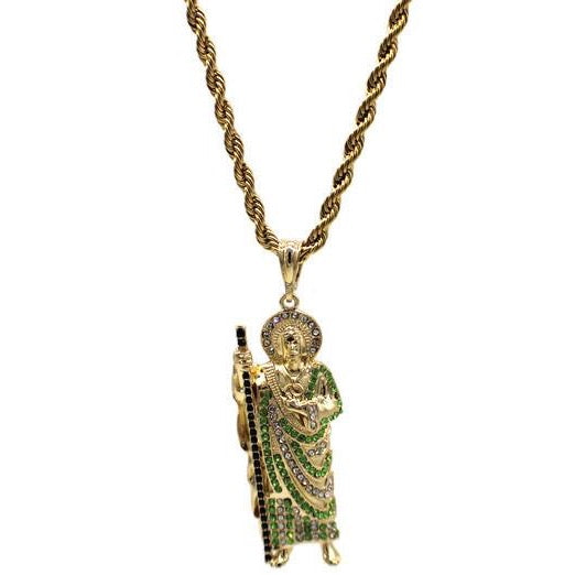 Large St Jude Large St Jude Pendant - Green Stones Option to Purchase only Pendant or with Rope 26" Necklace Pendant and Necklace are both 24K Gold Filled over Stainless Steel Pendant...