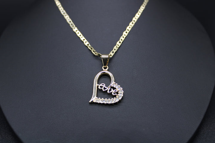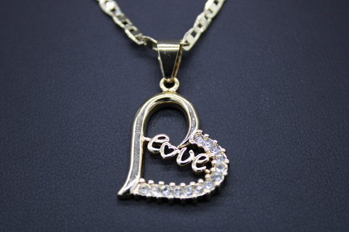 Love Heart Pendant Love Heart Pendant with White Cubic Zirconia Includes a 22" Gold Plated Necklace over Stainless Steel 24K Gold Plated Pendant Measures 1 1/2" Necklace Measures 22" Medalla de Corazon con cadena...