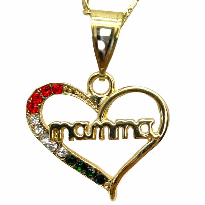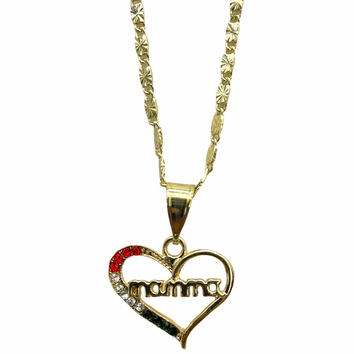 Mamma Heart Mamma Heart Pendant - Green, White & Red Stones Includes Necklace 24K Gold Filled Pendant Measures - 1 1/4" Necklace Measures - 22" Corazon de Madre Medalla de Corazon...