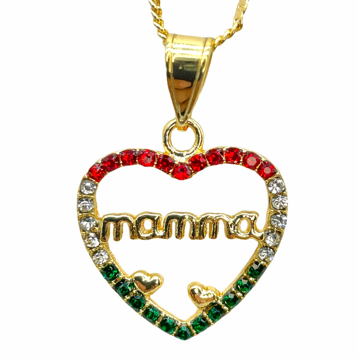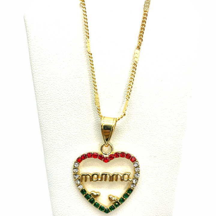 Mum Heart Mum Heart Pendant - Green, White & Red Stones Includes Necklace 24K Gold Filled Pendant Measures - 1 1/4" Necklace Measures - 22" Corazon de Madre Medalla de Corazon...
