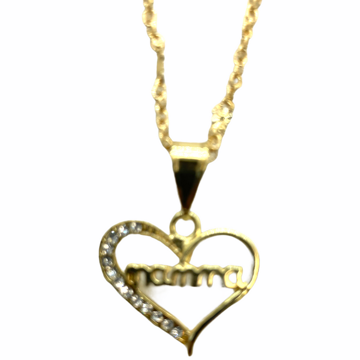 Mamma Heart Mamma Heart Pendant - White Stones Includes Necklace 24K Gold Filled Pendant Measures - 1 1/4" Necklace Measures - 18" Corazon de Madre Medalla de Corazon con la palabra "Mamma" -...