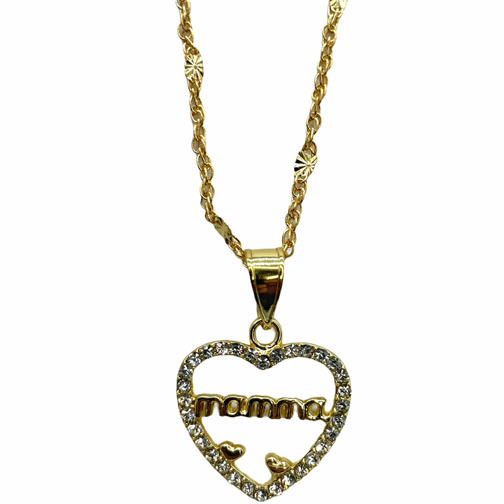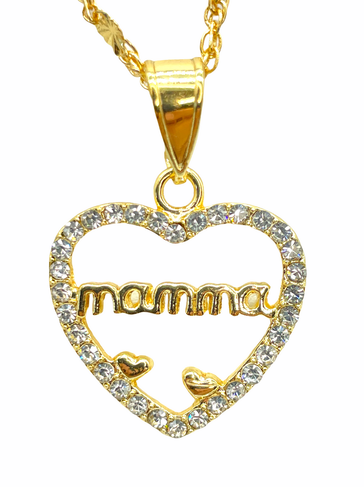 Mamma Heart Mamma Heart Pendant - White Stones Includes Necklace 24K Gold Filled Pendant Measures - 1 1/2" Necklace Measures - 18" Corazon de Madre Medalla de Corazon con la palabra "Mamma" -...