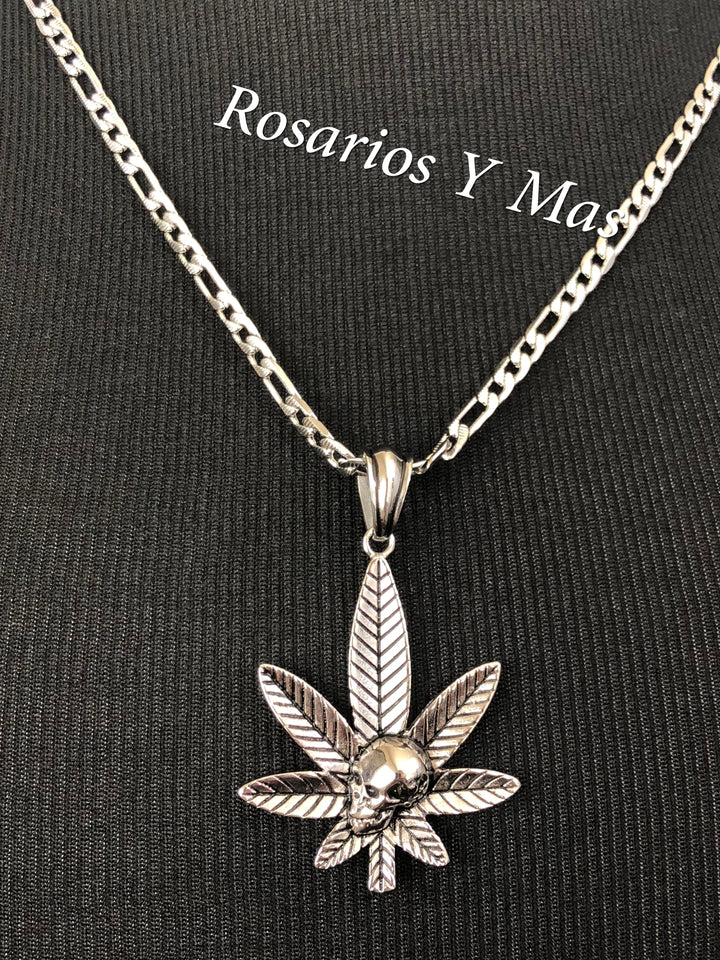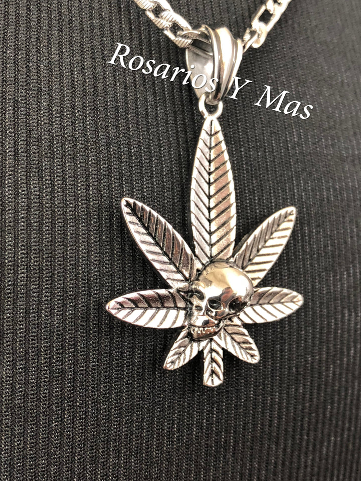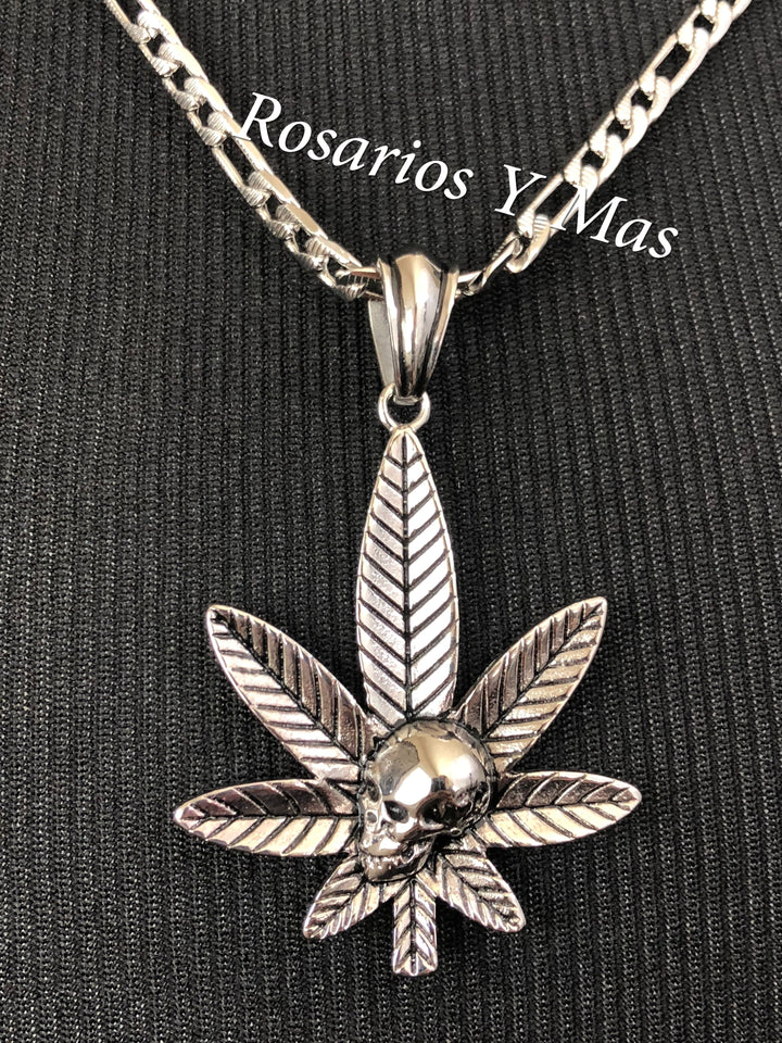 Marijuana with Skull Pendant with 24" Necklace Includes a 24" Figaro Stainless Steel Necklace Pendant Measures: 2 3/4" Necklace Measures 24" *Please Read in Detail* Rosarios Y Mas Inc. provides a life time...