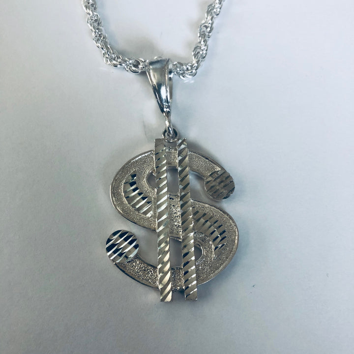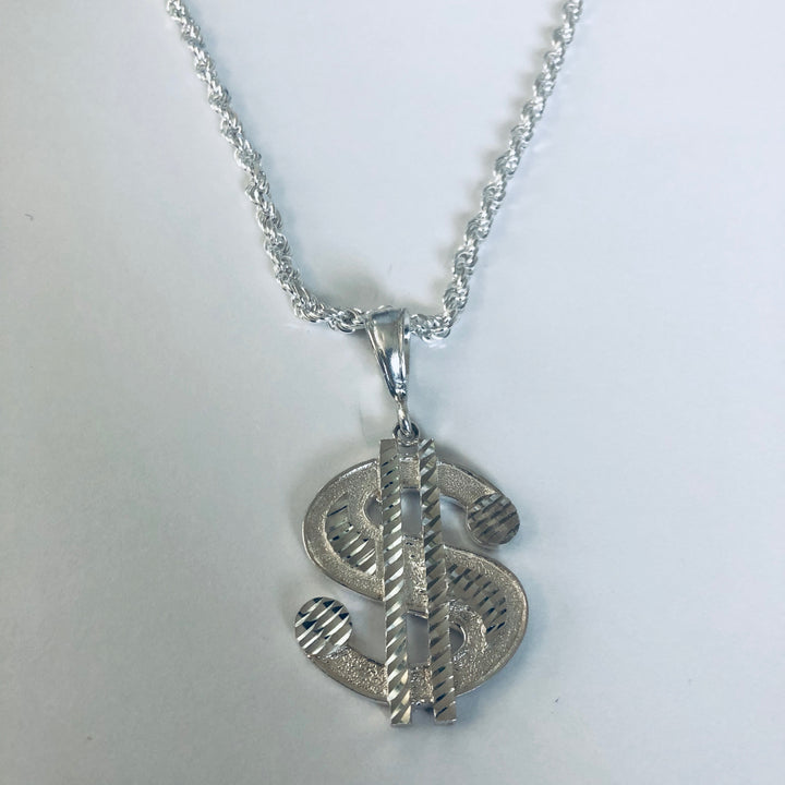 Money Sign with 26" Rope Necklace (.925 PURE SILVER)