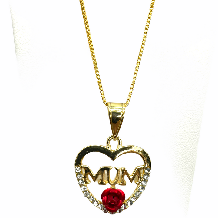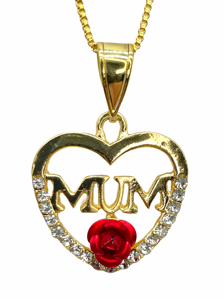 Mum Heart Mum Heart Pendant - White Stones Includes Necklace 24K Gold Filled Pendant Measures - 1 1/4" Necklace Measures - 22" Corazon de Madre Medalla de Corazon con la palabra "Mum" -...