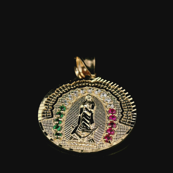 10K Gold Pendant Only White, Green and Red CZ Stones Pendant Measures - 1 4/8" Tall Pendant Weight - Approximately 3-4 grams