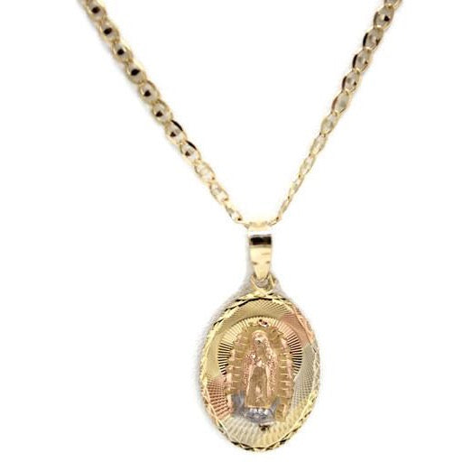 14K Gold Our Lady of Guadalupe 14K Real Solid Gold Double Side Pendant Three Tone Our Lady of Guadalupe on One Side and Crucifix on Other Side Pendant Measures approximately 1...
