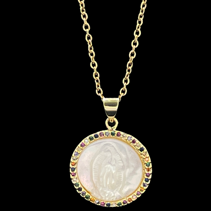 Our Lady of Guadalupe Our Lady of Guadalupe Pendant - Color Stones Includes Necklace 24K Gold Filled Pendant Measures - 1" Necklace Measures - 22" Virgen de Guadalupe Medalla de La Virgen...