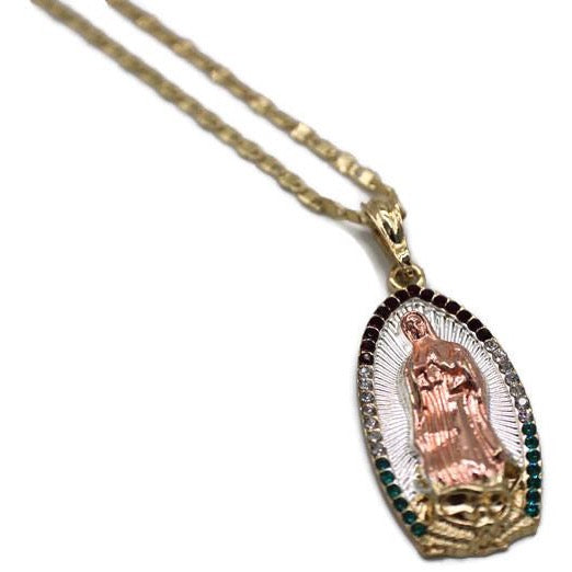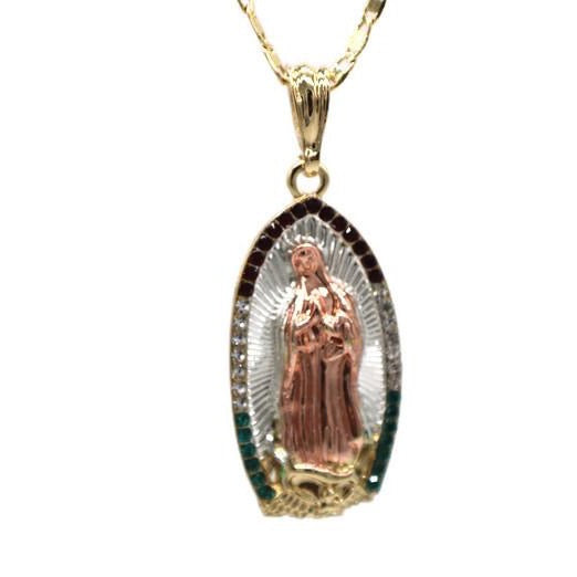 - Our Lady of Guadalupe Pendant - Three Tone with Mexican Color Stones