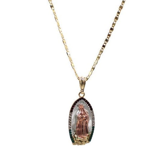 *Please Read in Detail*- Medalla de La Virgen de Guadalupe - Tres Tonos con piedras de los colores de la Bandera de Mexico