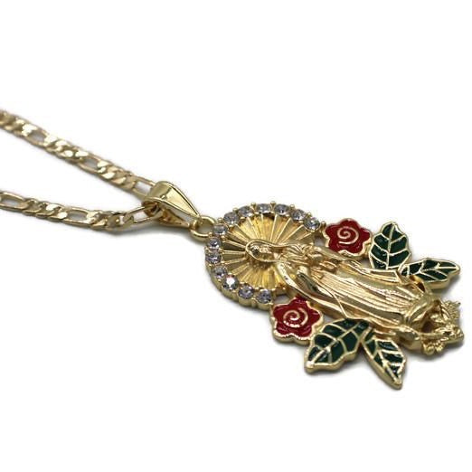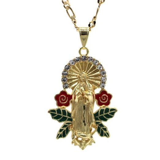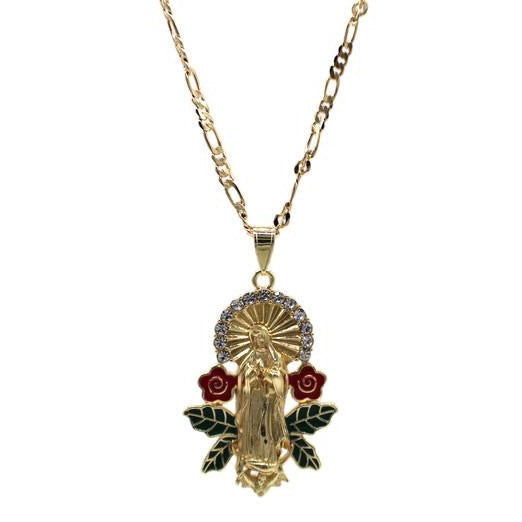 - Our Lady of Guadalupe Pendant - Red Color Roses with Green Leafs