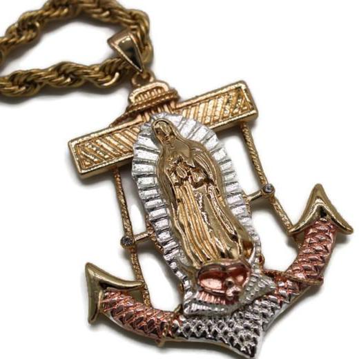 - Our Lady of Guadalupe on Anchor Pendant - Three Tone