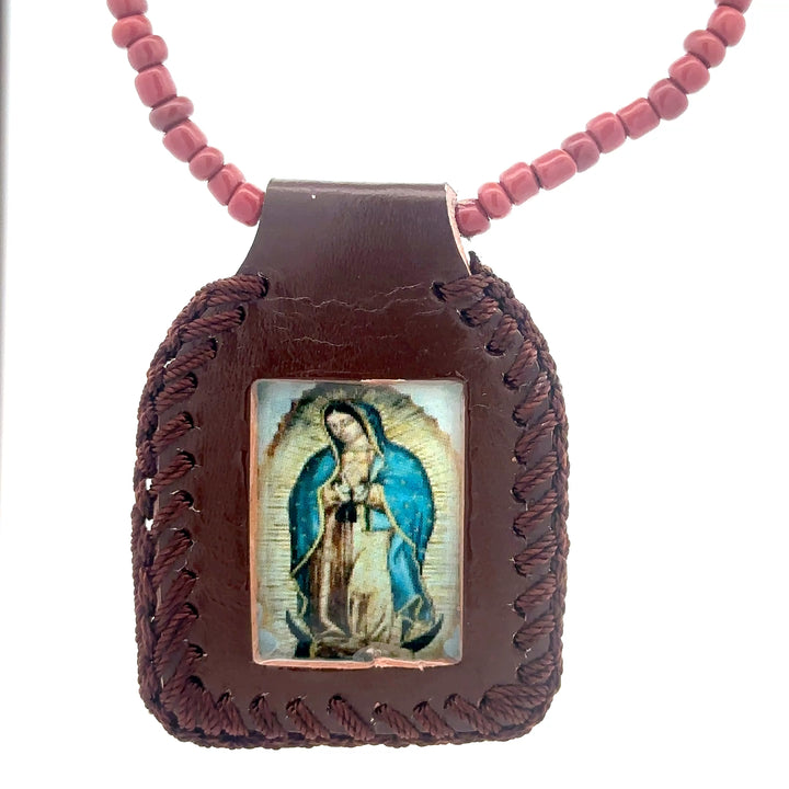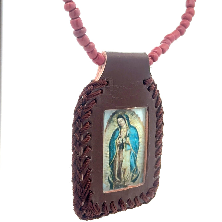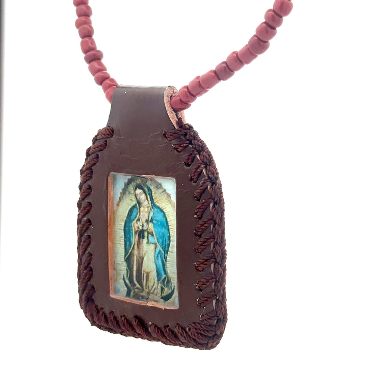 Our Lady of Guadalupe Brown Leather Necklace