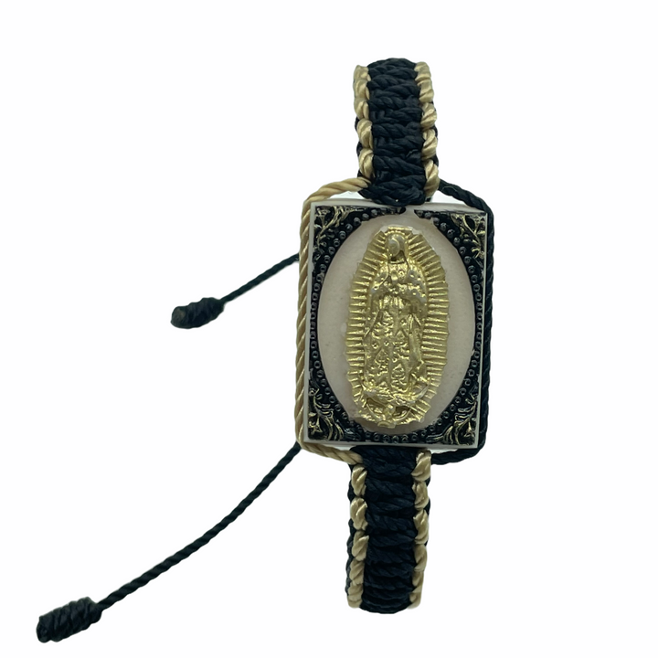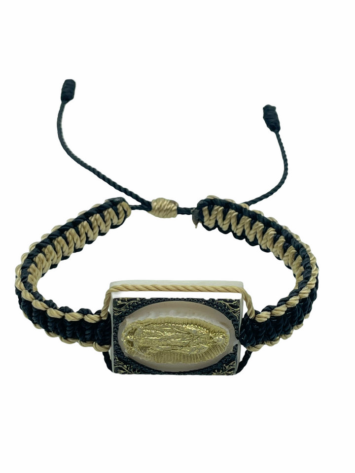 Our Lady of Guadalupe Handmade Bracelet Knotted Nylon Rope - Black and Cream Color Bracelet is adjustable - One size fits all Has a resin pendant on the center with the...