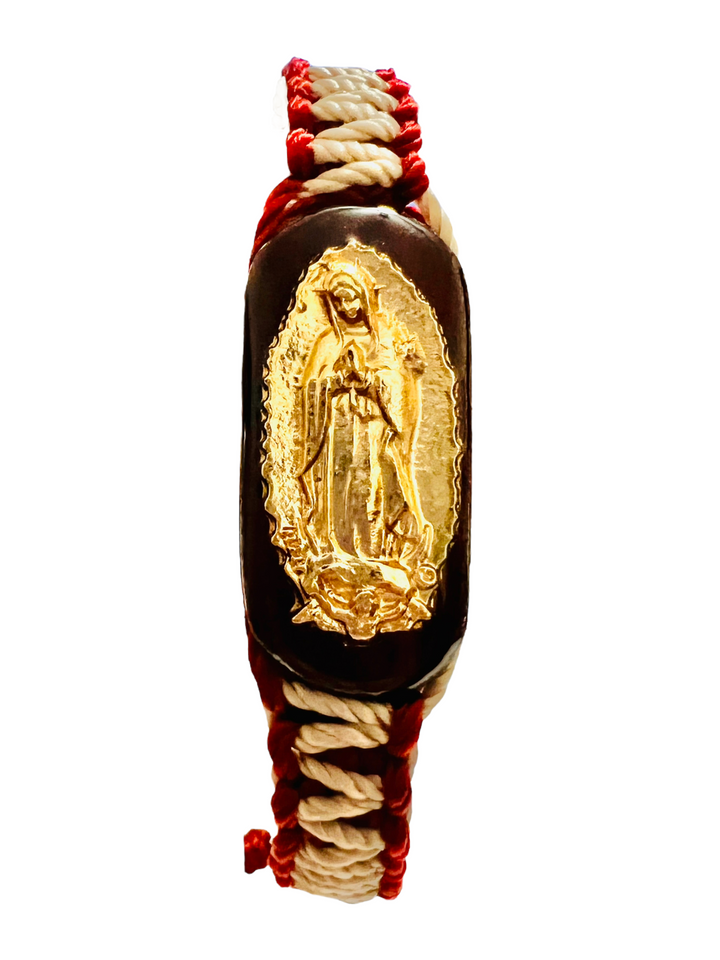 - Wood Pendant w/ Our Lady of Guadalupe Gold Plated Image