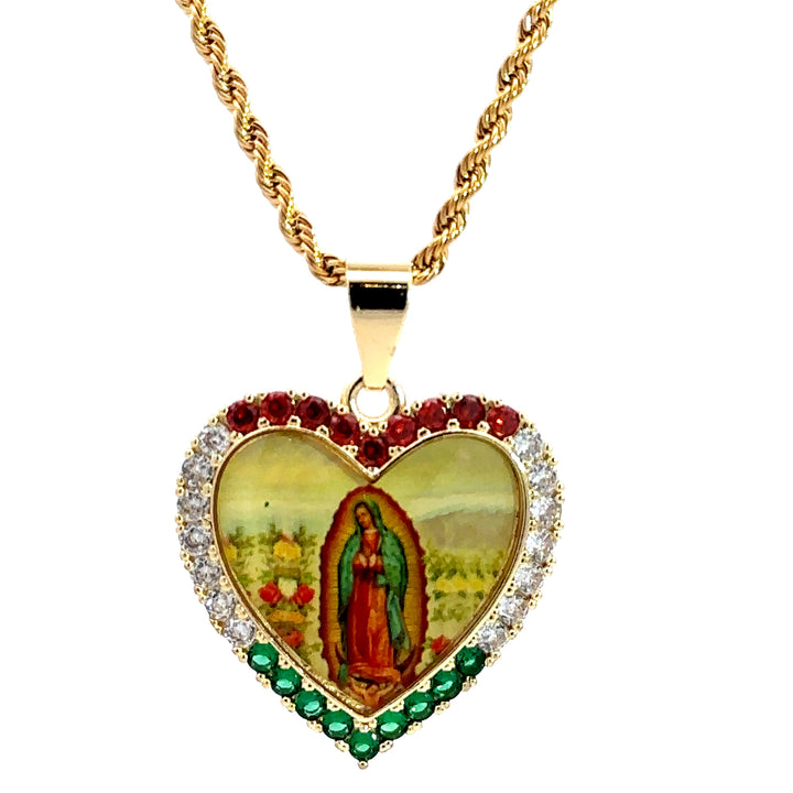 - Our Lady of Guadalupe Heart Pendant - Has Mexican color stones (Red, White and Green)