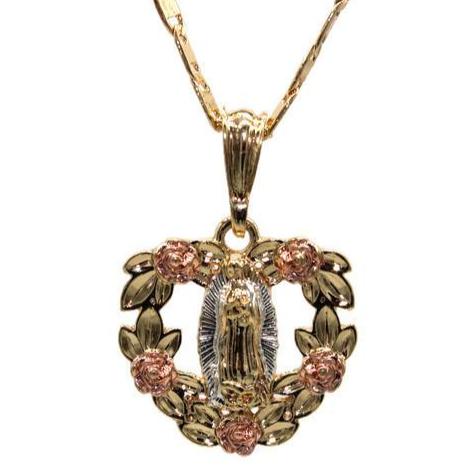 - Our Lady of Guadalupe Heart Pendant - Three Tone