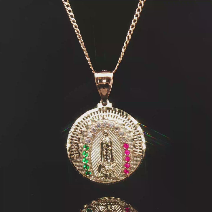 10K Our Lady of Guadalupe Pendant - Measures 1 1/4" with bail, Weights 3-4 grams (CZ Stones) 10K Cuban Style...