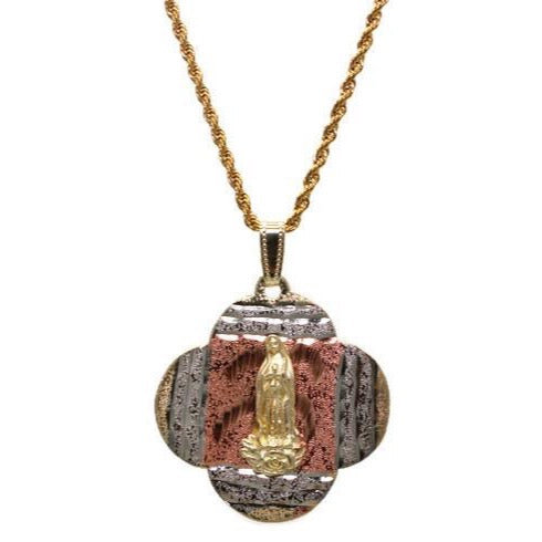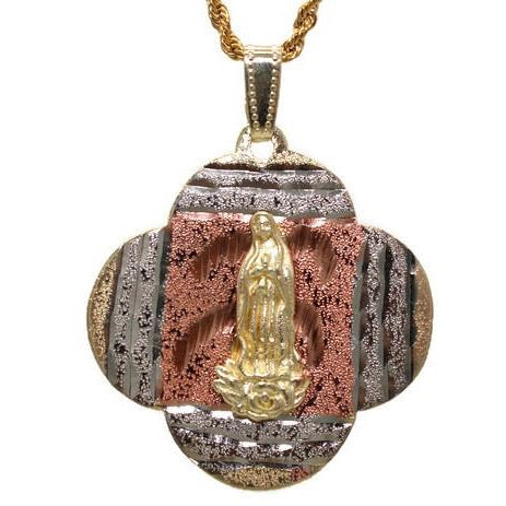 Our Lady of Guadalupe with Necklace Our Lady of Guadalupe Pendant - Three Tone Includes a 22" Necklace that is Gold Filled over Stainless Steel 24K Gold Filled Pendant Measures 2"...