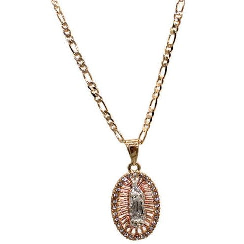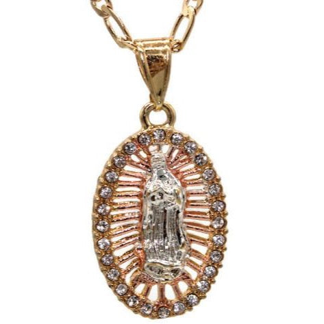 Our Lady of Guadalupe with Necklace Our Lady of Guadalupe Pendant - Two Tone; White Stones Includes a 24" Necklace that is Gold Filled over Stainless Steel 24K Gold Filled Pendant...
