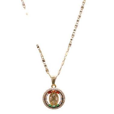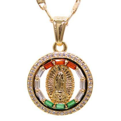 Our Lady of Guadalupe with Necklace Our Lady of Guadalupe Pendant - Round with Mexican Color Stones Includes a 24" Necklace that is Gold Filled 24K Gold Filled Pendant Measures 1" Necklace Measures 24"...