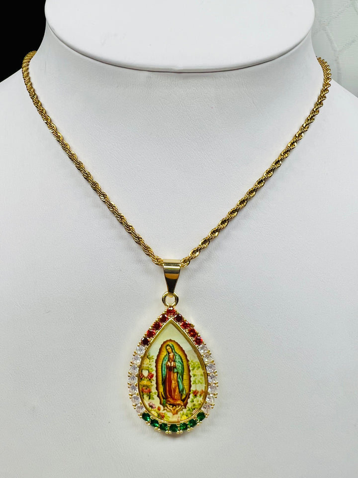 Our Lady of Guadalupe Tear Drop Pendant with Necklace