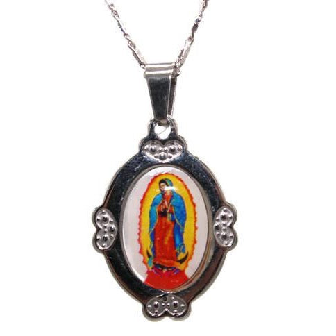 Our Lady of Guadalupe with Necklace Our Lady of Guadalupe Pendant Includes a 18" Necklace that is Stainless Steel Stainless Steel Pendant Measures 1 1/4" Necklace Measures 18"- 2mm Virgen de...