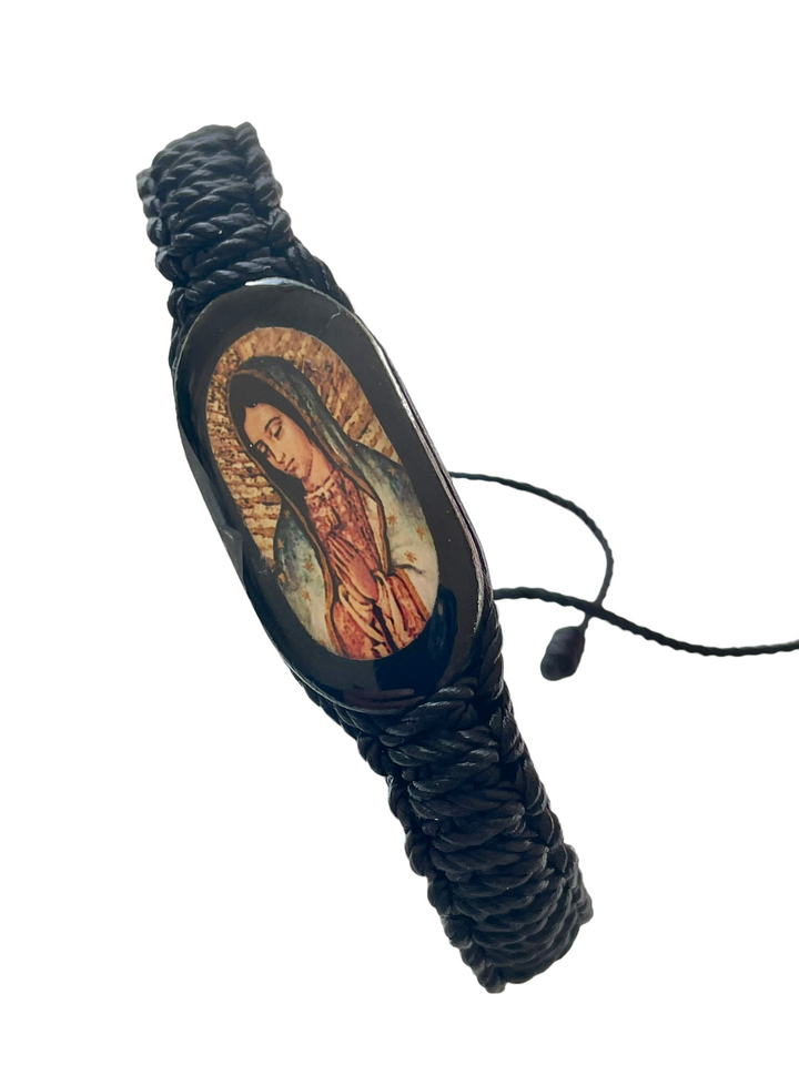 - Tiene la imagen de La Virgen en oro laminado en frente y en color atras