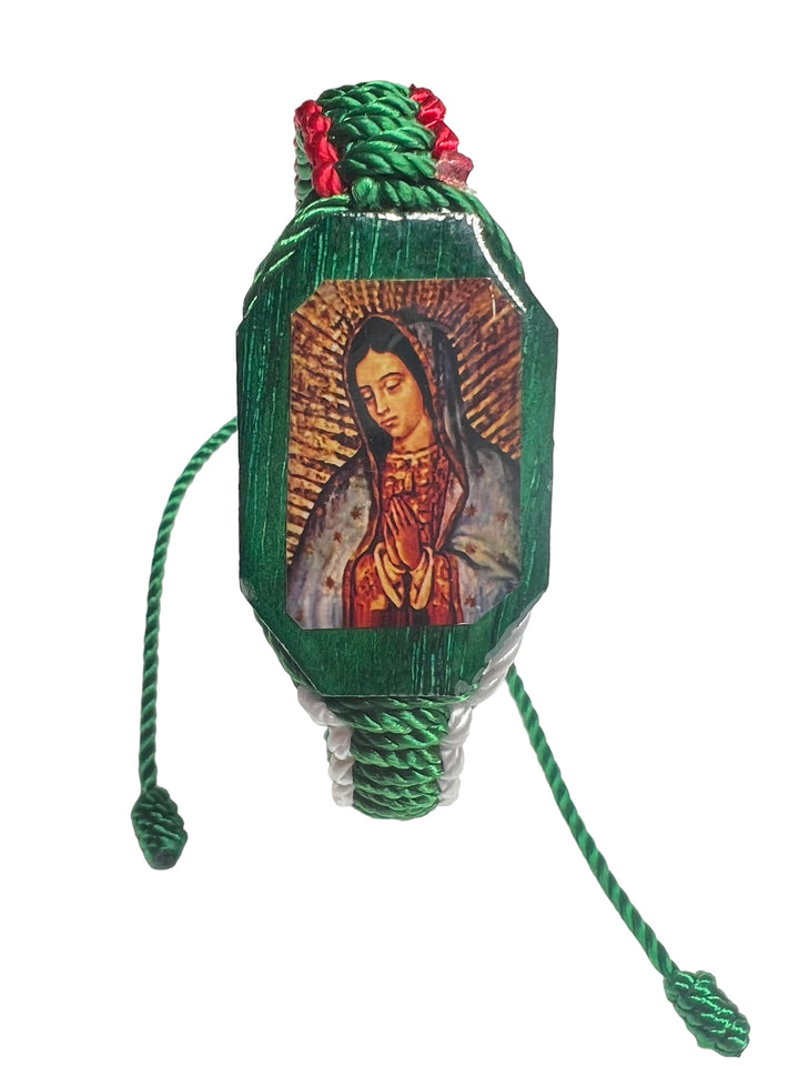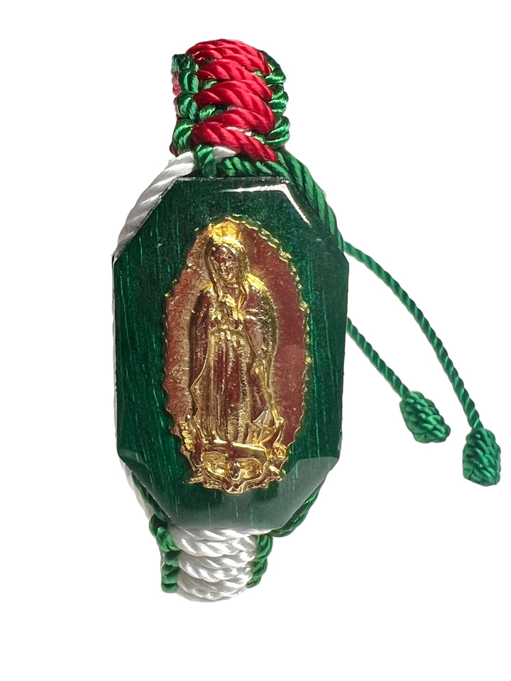 - Has Gold Plated Our Lady of Guadalupe Charm on One Side and Color image of Our Lady of Guadalupe on Other Side