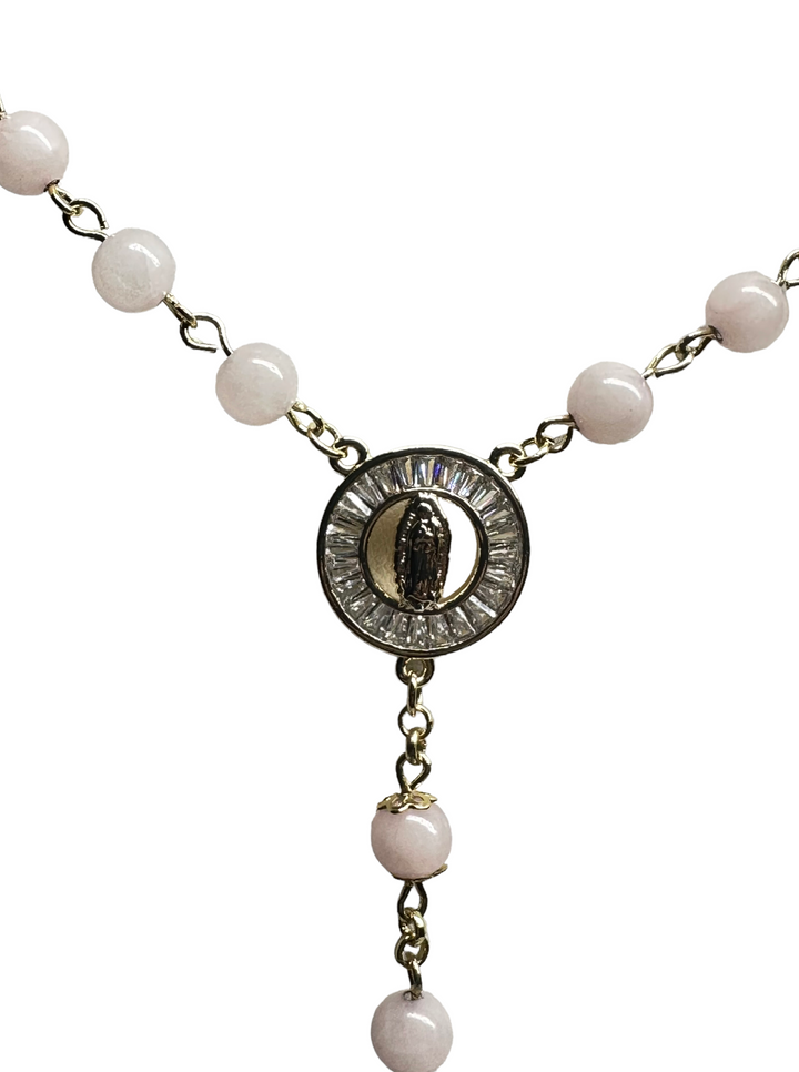 Our Lady of Guadalupe Rosary Necklace - Pink
