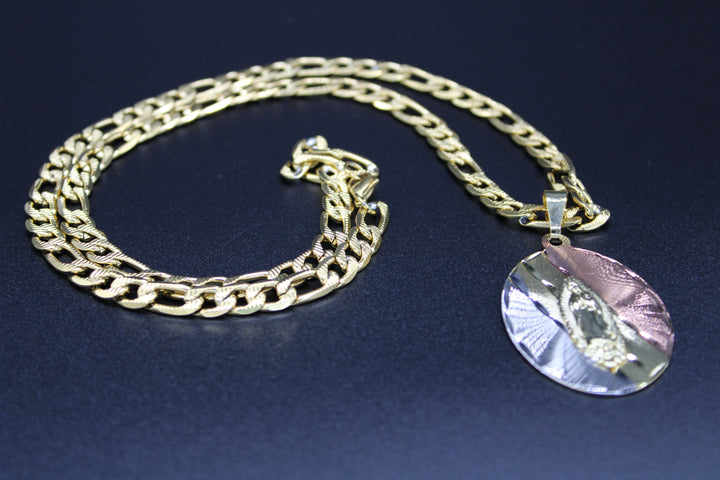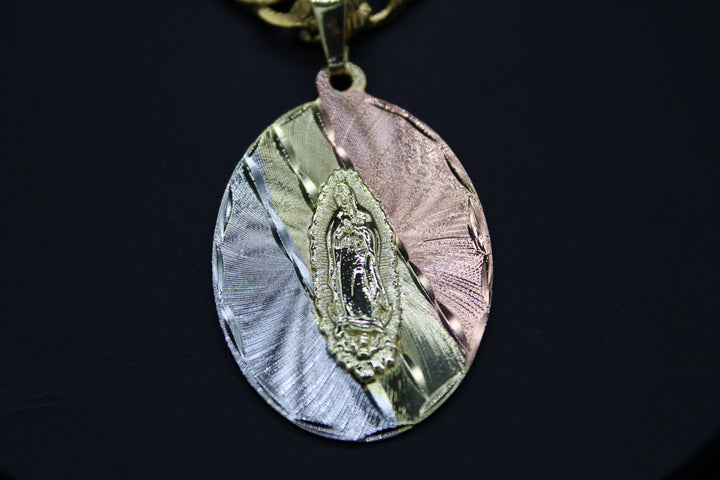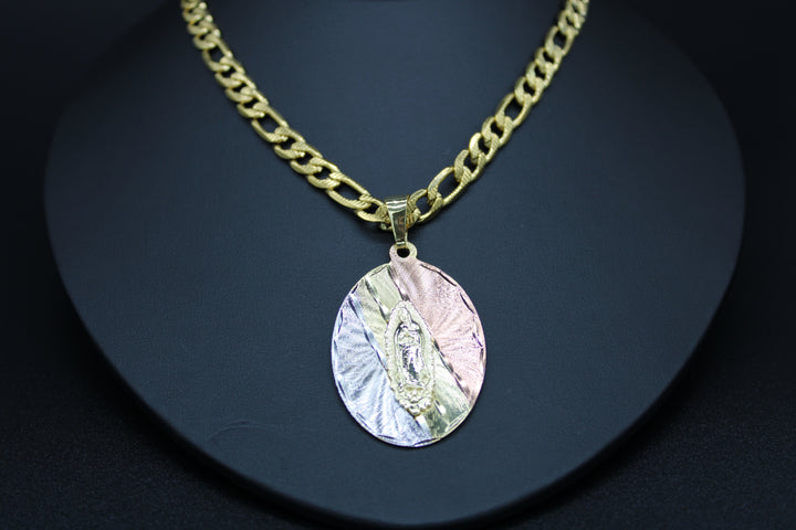 Our Lady of Guadalupe with 26"Necklace (24K Gold Plated - Three Tone)