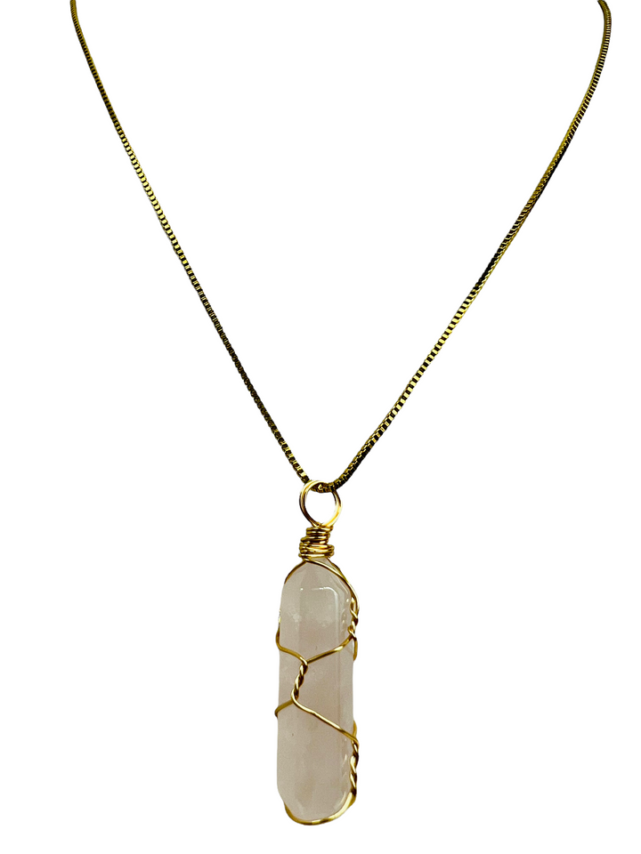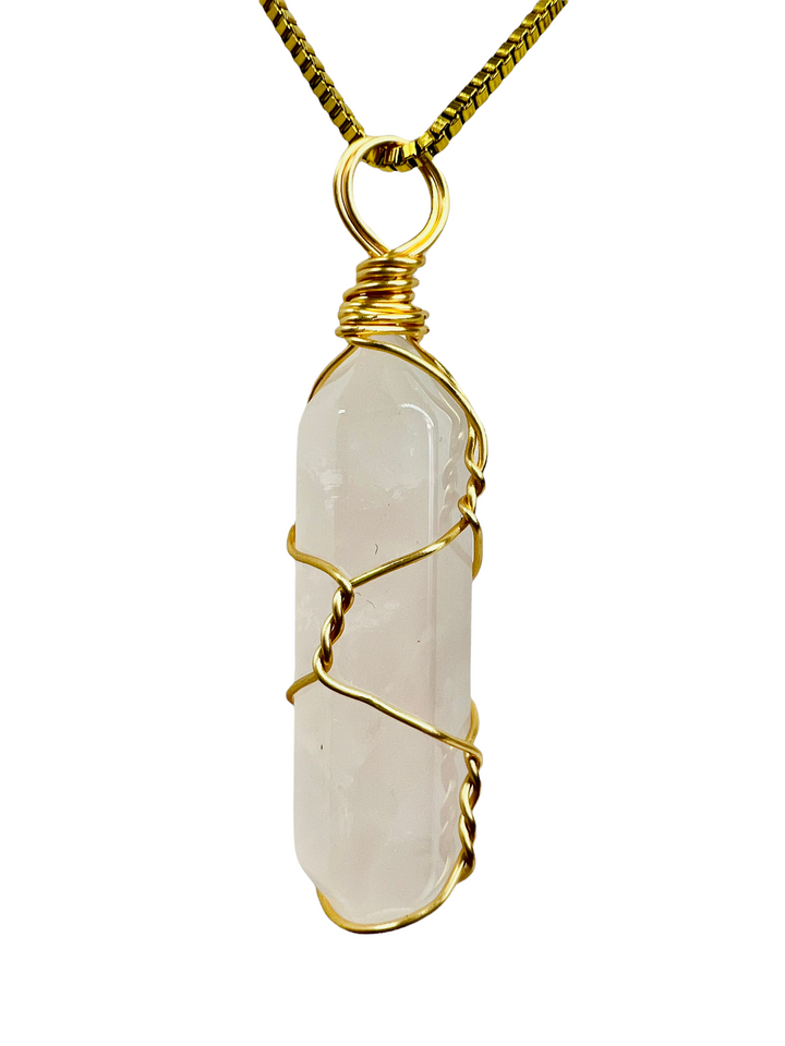 Light Pink Crystal Stone Crystal Stone Pendant - Light Pink Color Necklace is 24K Gold Filled over Stainless Steel Pendant Measures 40 mm Necklace Measures 24" - 3mm Cristal Cuarzo Rosa...