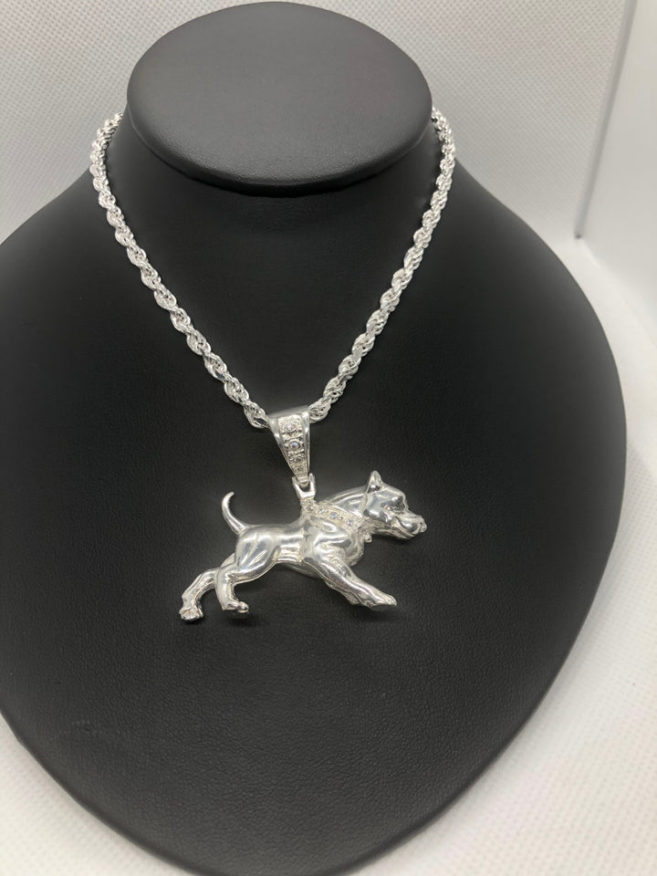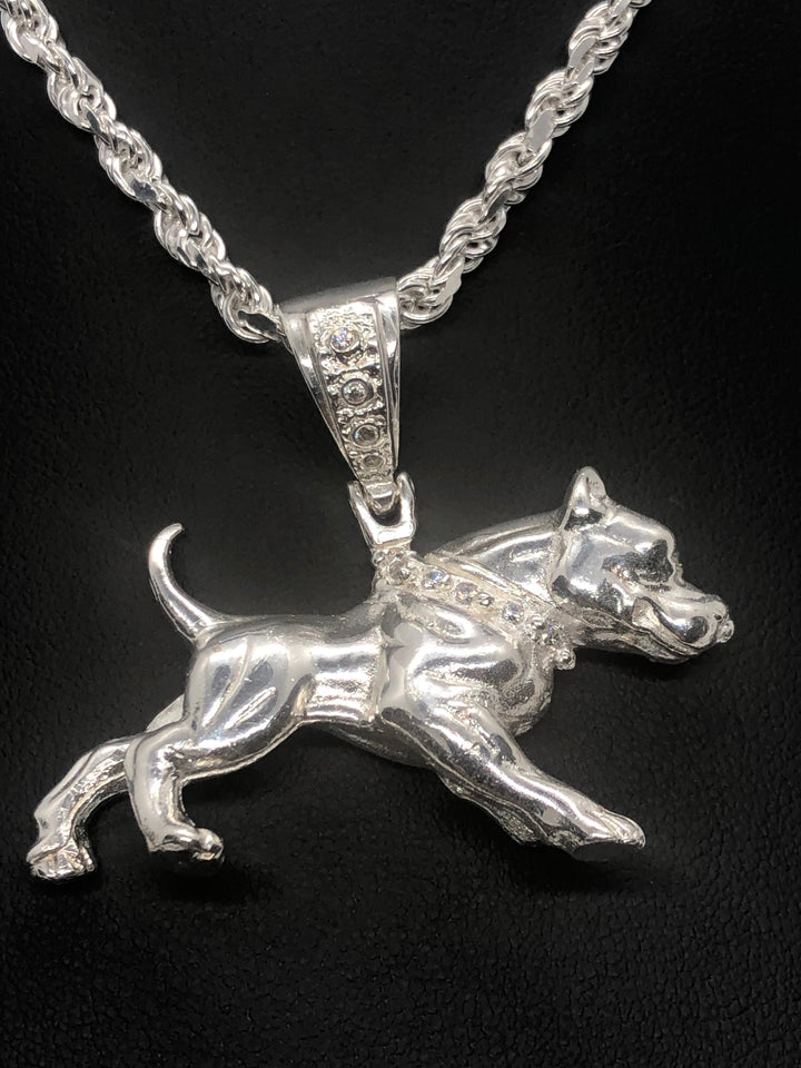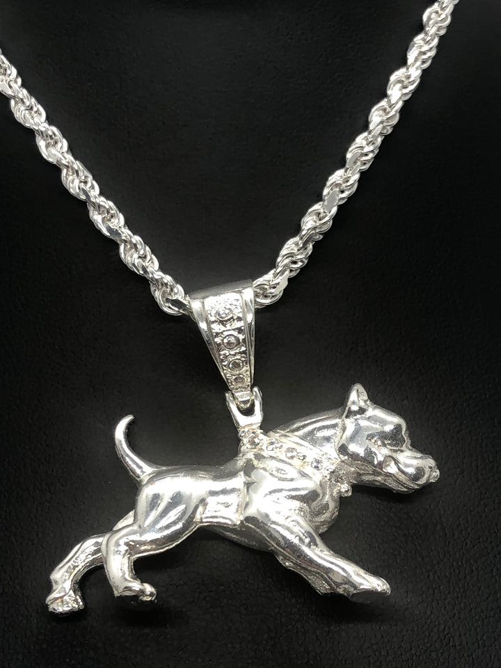 Pitbull Dog with 24" Rope Necklace (.925 PURE SILVER)
