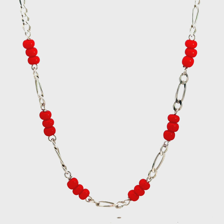 Protection Silver Necklace Protection Necklace 100% .925 Silver Red Beads Measurements: 24" Cadena de Plata para la Protección Cadena para la Proteccion 100% .925 Plata Solida Bolas color Rojo Medida: 24"