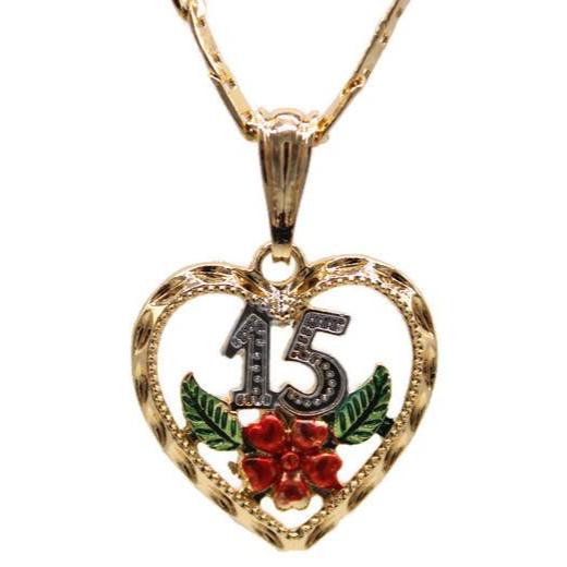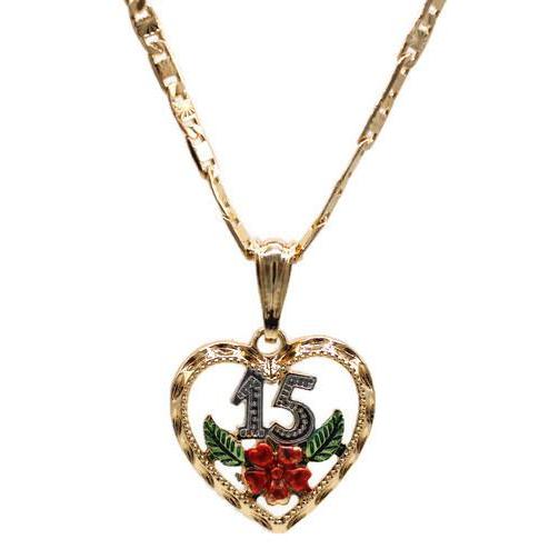 Quinceanera Heart with Necklace Quinceanera Heart Pendant Includes a 20" Necklace that is Gold Filled 24K Gold Filled Pendant Measures 1 1/2" Necklace Measures 20" Corazon de Quinceañera con Cadena Medalla de Corazon de Quinceanera Incluye cadena...