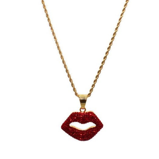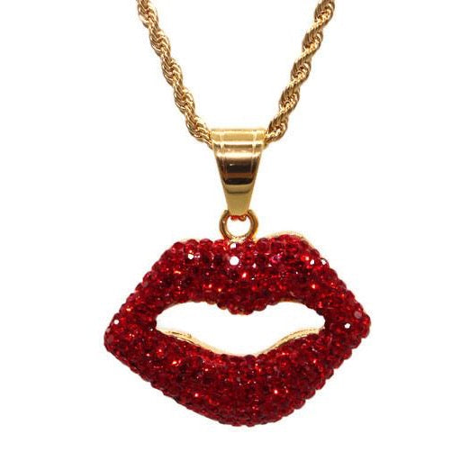 Red Lips Pendant with Necklace Red Lips Pendant - Has Red Stones Necklace is 24K Gold Filled over Stainless Steel Pendant is 24K Gold Filled over Stainless Steel Pendant Measures 1 3/8" Necklace Measures 22"-...
