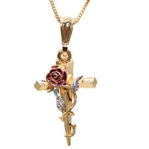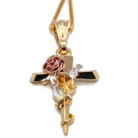Rose Cross Pendant with Necklace (24K Gold Filled)