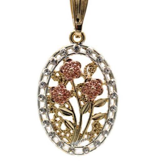 Rose Flower with Necklace Rose Flower Pendant - Pink Flowers Includes a 22" Necklace that is Gold Filled 24K Gold Filled Pendant Measures 1 3/4" Necklace Measures 22" Medalla de Rosa/Flor con Cadena...