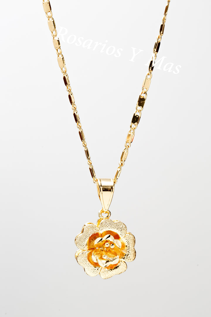Rose Flower Pendant with Necklace (24K Gold Filled) - Rosa Flor con Cadena Oro Laminado