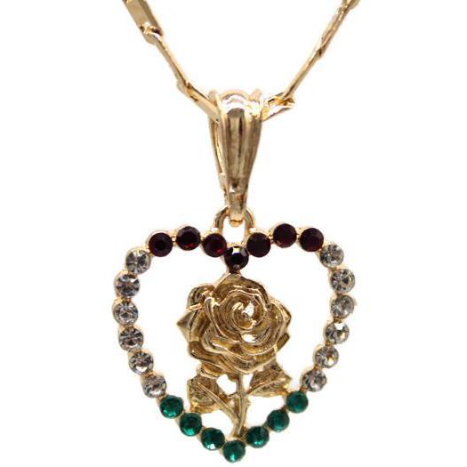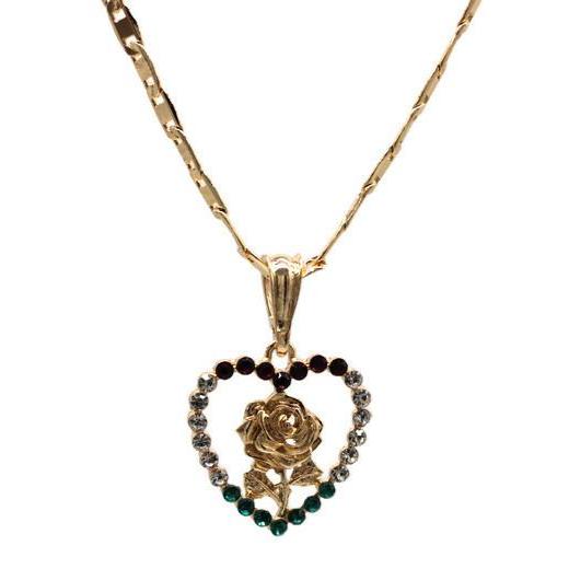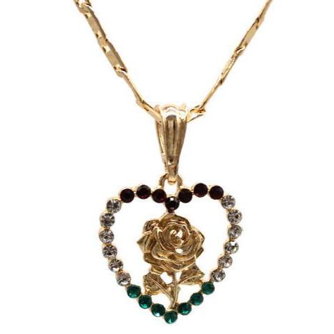 Rose in Heart with Necklace Rose in Heart Pendant - Has Mexican Color Stones around the Heart Includes a 20" Necklace that is Gold Filled 24K Gold Filled Pendant Measures 1 1/2" Necklace...